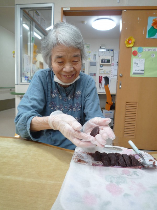 あんこを団子状に丸めて下さるH様。