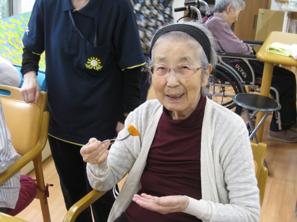 こんにちは! グループホームみんなの家・あきがせの介護ブログです! よろしくお願いいたします。 オーナー様から『かき』の差し入れがありました。召し上がられた様子をお知らせいたします!!
