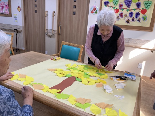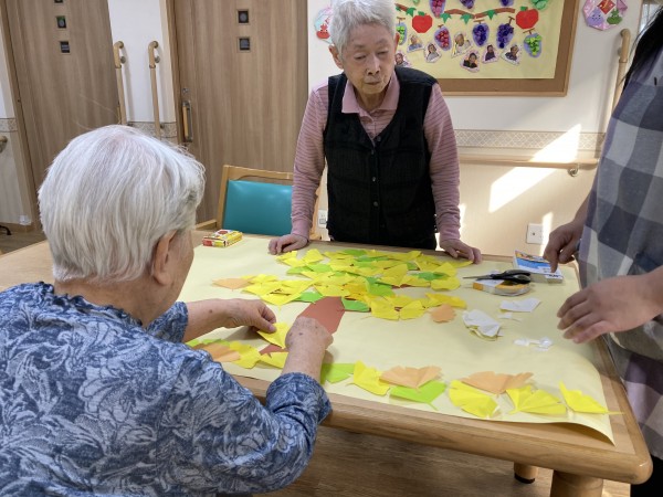 秋の壁飾りを作っていただいています。