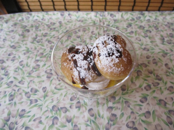 かぼちゃプリンにプチシュークリーム乗せて・・・♬