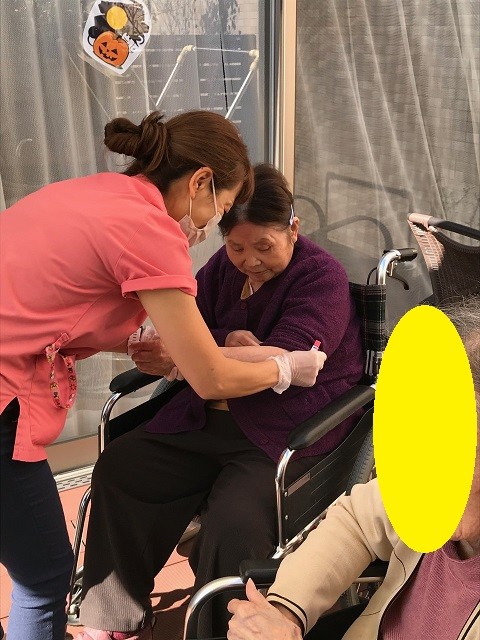 この後、宍戸看護師さんもご入居者様と一緒に秋の匂いを感じながら、外気浴を楽しまれましたー(*^。^*)