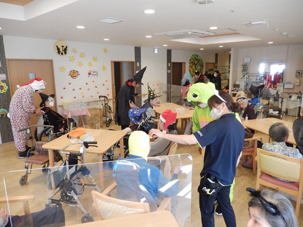 ホーム長も自ら仮装して、ご利用者の皆さまもお一人おひとり、仮装をしてくれて、とっても盛り上がりました!(^^)!