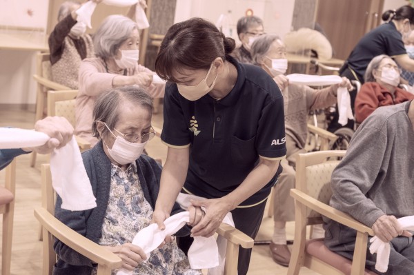アミカの郷亀有の訪問タオル体操であり