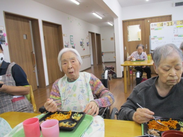 こんにちは! グループホームみんなの家・あきがせの介護ブログです! よろしくお願いいたします。 今日はお愉しみお弁当を作りました。お召し上がられたご様子をお知らせいたします!!