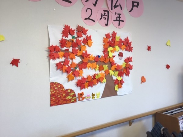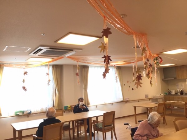 以前ご紹介した「秋の模様替え」でご利用者様方に手伝って頂いた飾り付けが完成しました!!