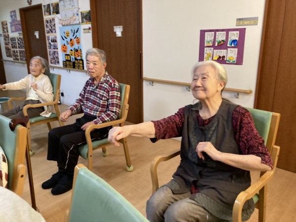先月末に新しく入居されたご利用者様も、無理なく体操に参加されていました♪