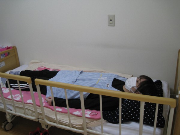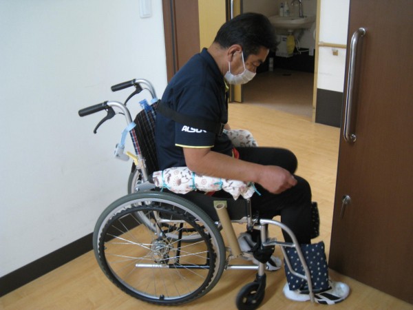 次に体の右側にマヒがあるのに右側にセンサーコールを置かれた場合の操作を行いました。