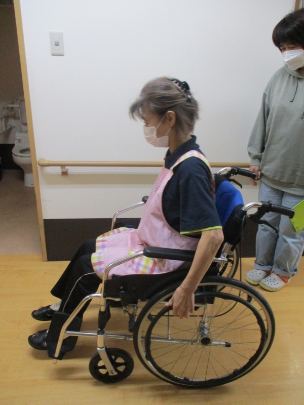 車椅子の操作では入り口の出入りなどとても難しく、どうすればスムーズに動かせるか考えながら操作していました。