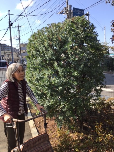 まだうっすらと赤いもみじを見て、「まだまだね」と、オリーブの木を見て「これ食べれるのないじゃない」と談笑しました。