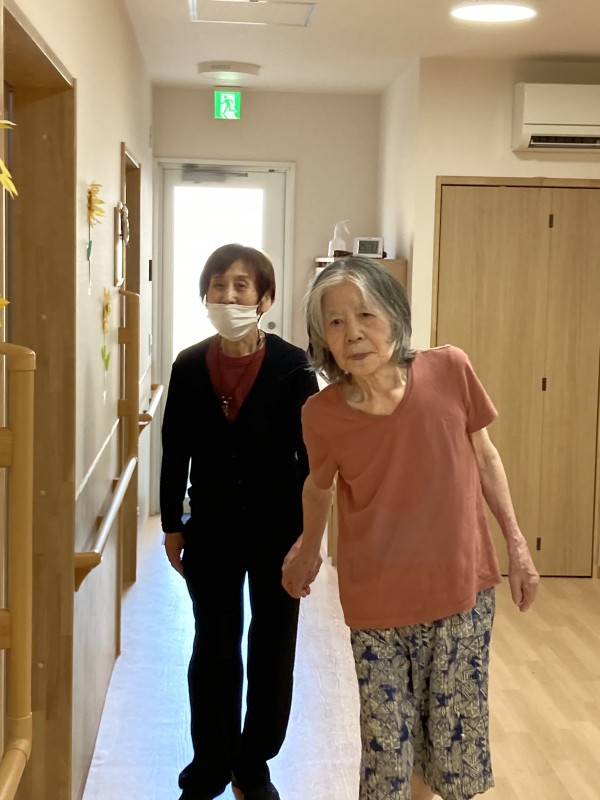 こうやって施設内を歩いて頂いて、すこしでも力をつけて頂いています!(^^)!