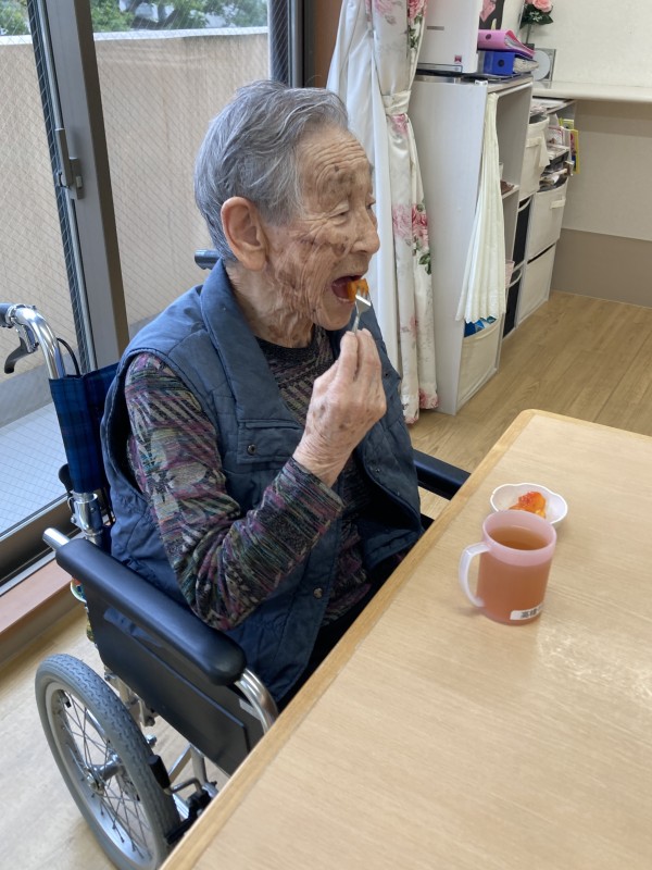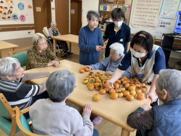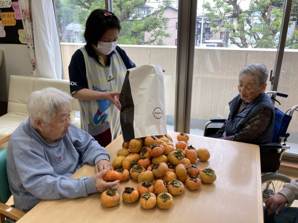 先日、ご家族様が庭で収穫した沢山の柿を母に!!と袋いっぱいご持参して頂きました。