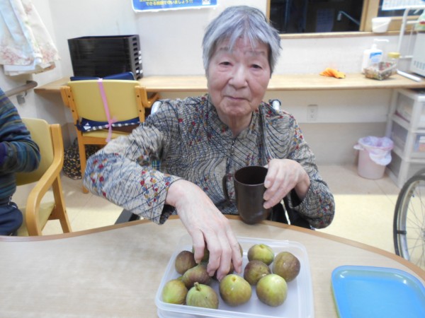 ホームの中庭に植えたイチジクが3年かかり実をつけました!