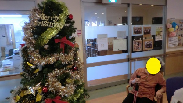 ホールにいた利用者様にもお手伝いしていただきながら飾りをつけていきます。