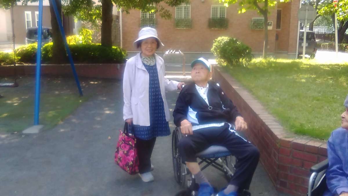 皆様こんにちは!小規模多機能稲城長沼です!5月12日(土)近所の幸方公園へお散歩に行きました♪お天気が良く暑かったのですが帽子をかぶりジュースとお菓子を持って全員で出かけましたよ~♪木陰でおやつタイム楽しいお散歩となりました(*^_^*)