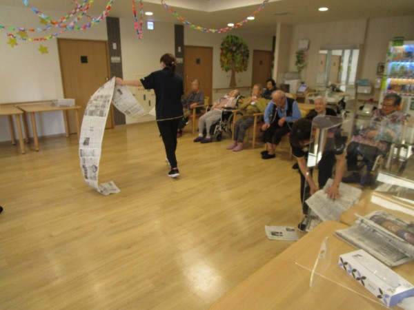 本日は、新聞たぐり寄せゲームを行いましたぁ(^^)/