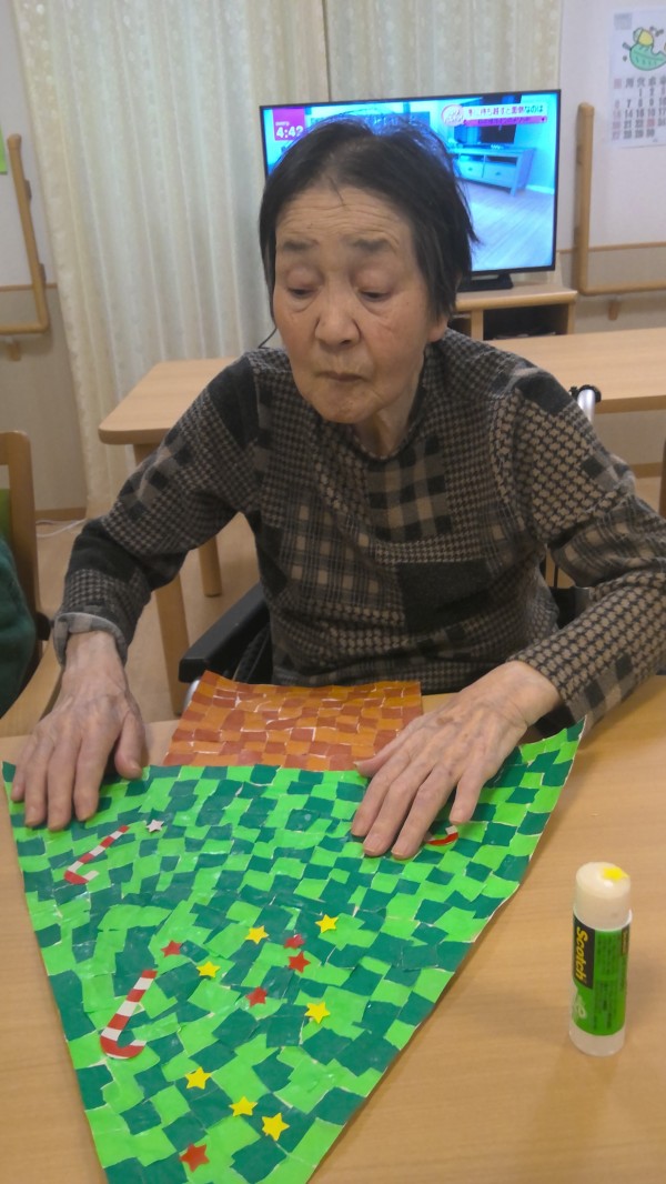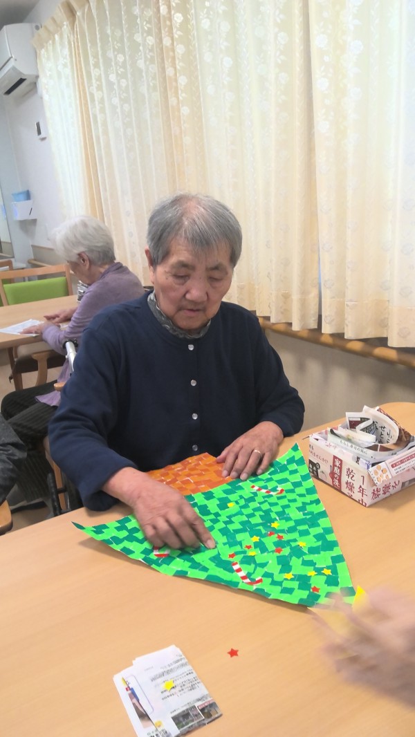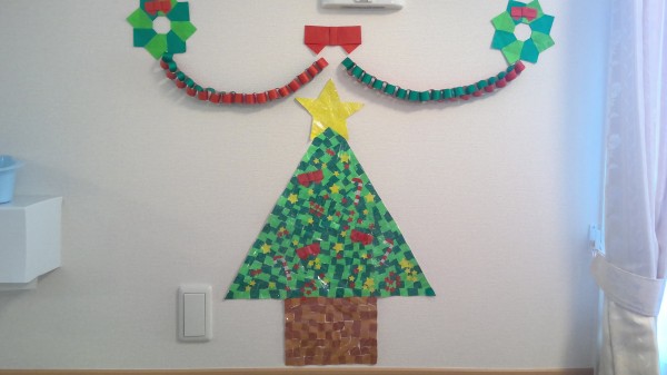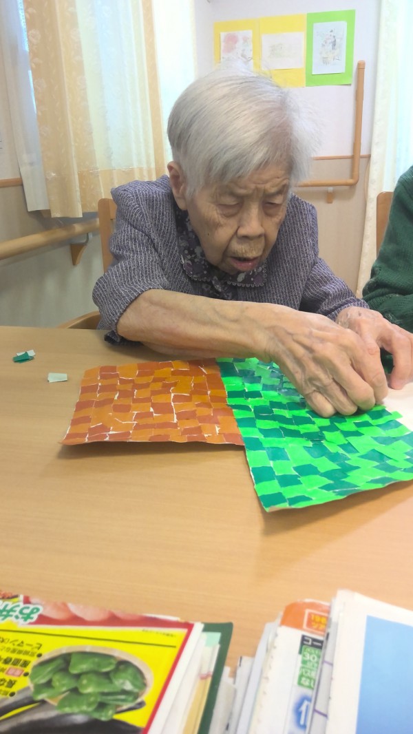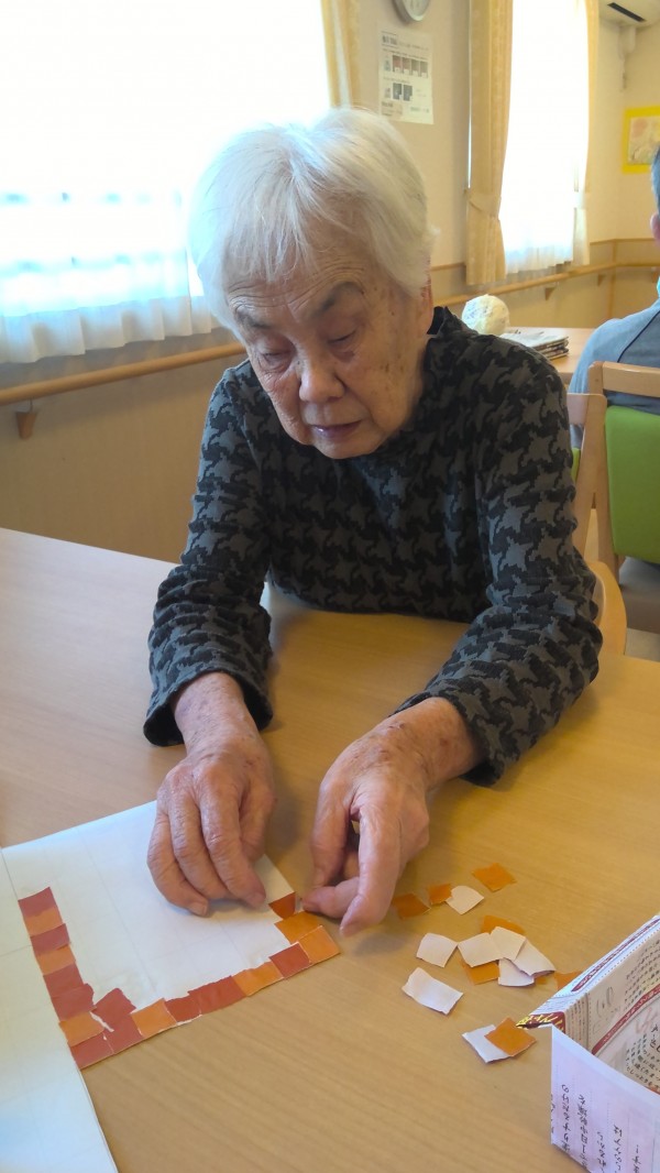 折り紙をちぎって模造紙に貼っていきます。