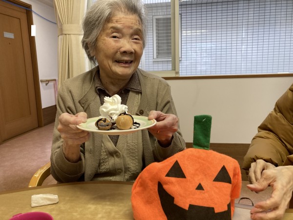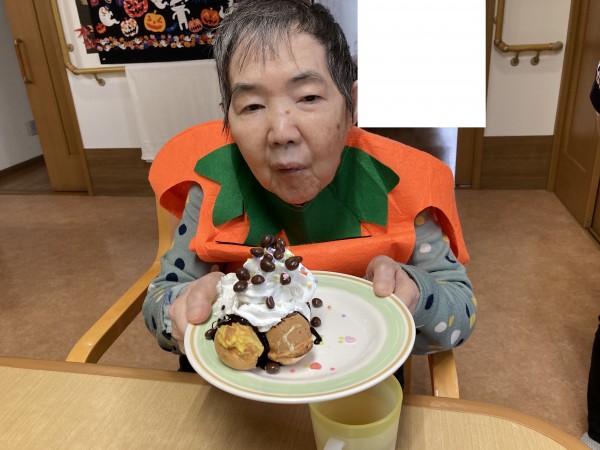 ハロウィーンの衣装に着替えて頂き召し上がってもらいました。