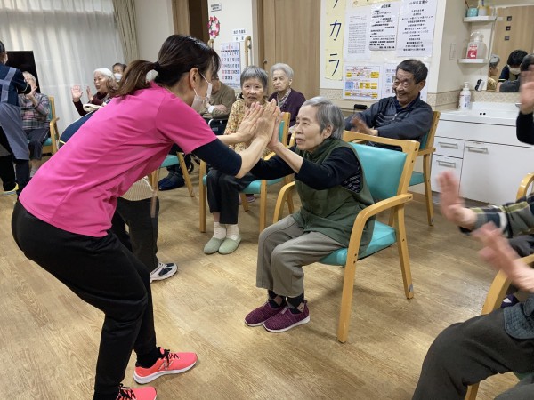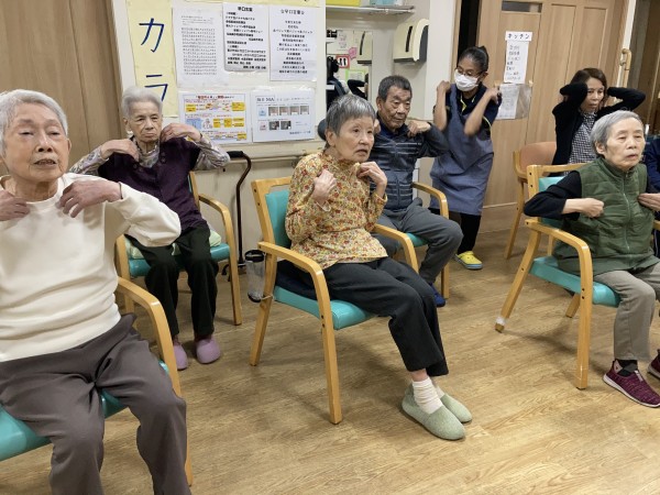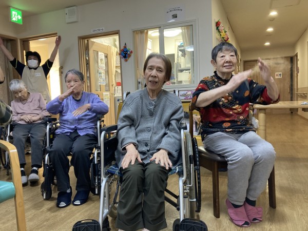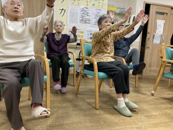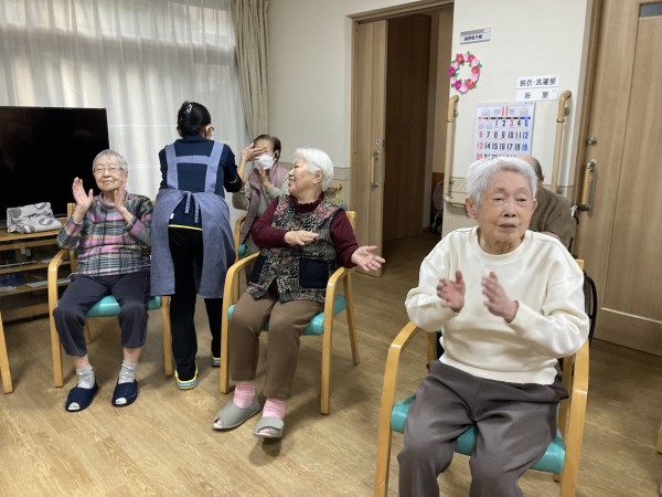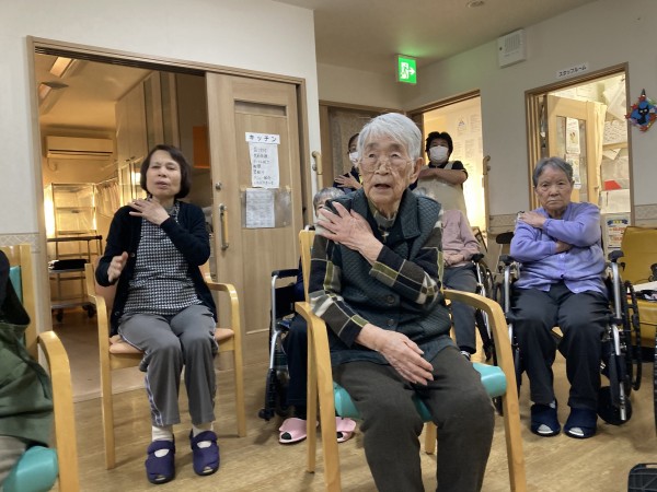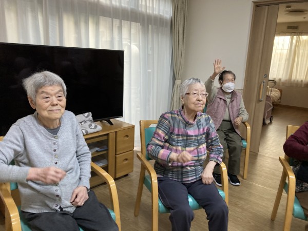 健康増進コンテンツ訪問があり、ご入居者様は体操に参加されました。