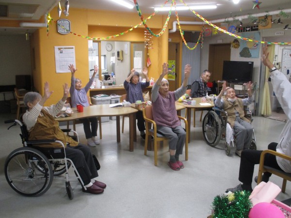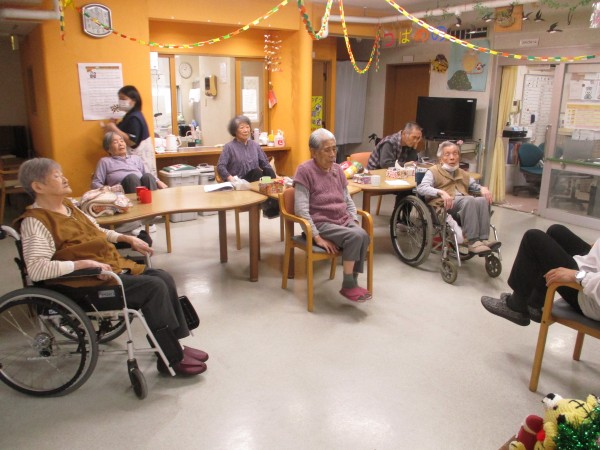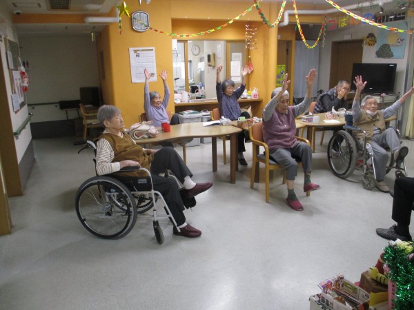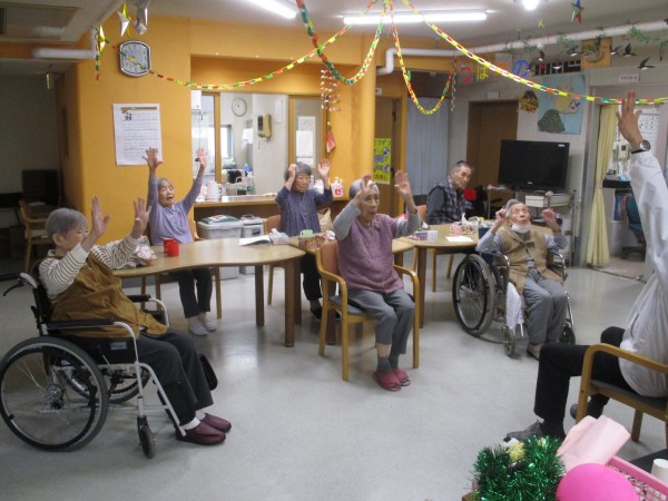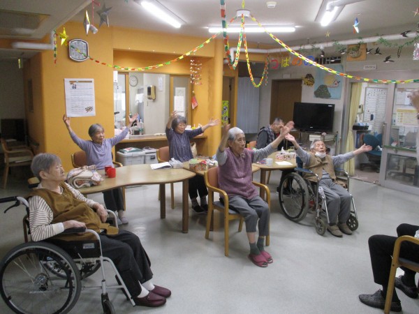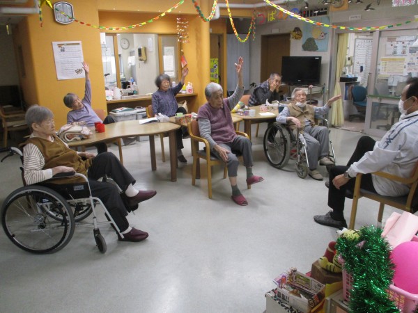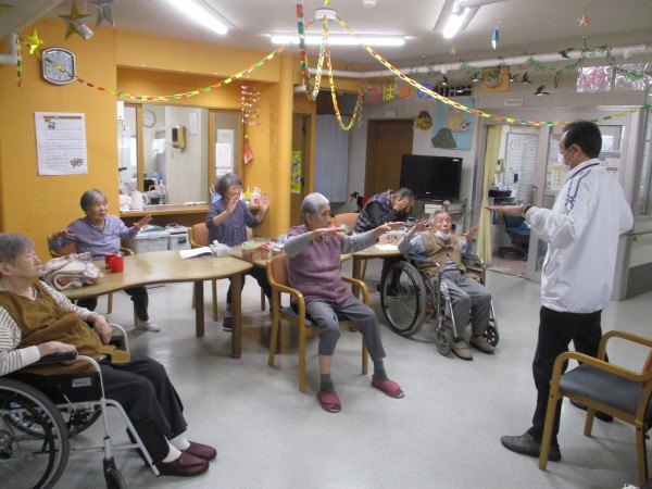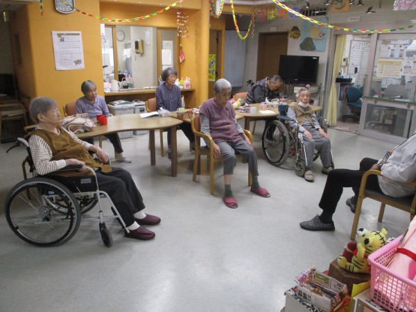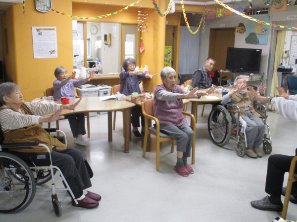 今回は午前中に行われた、トレーナーが来られての『いきいき体操』の様子を紹介します。
