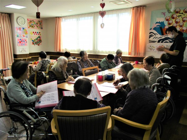 今日は、クリスマス飾り作りがひと段落したので皆さんで童謡を歌いました。