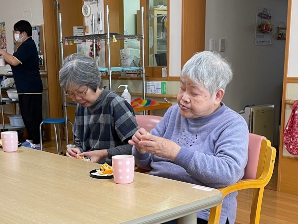 ご家族様がホームに来られた際に、「庭でなったみかんなので、すっぱいかもしれませんがみなさんでどうぞ!」と、