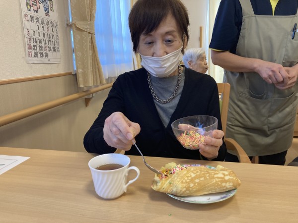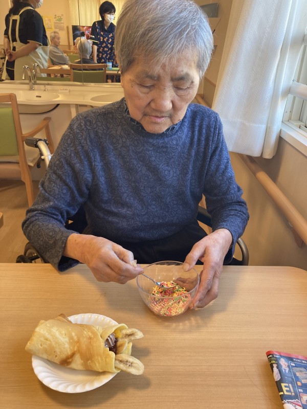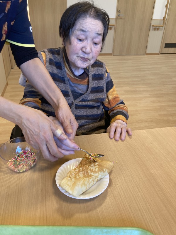 今日のおやつレクはクレープです。