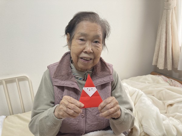 ご入居者様に折り紙でサンタを作っていただきました。