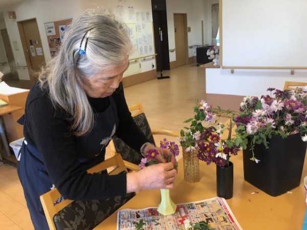 お花が大好きな入居者様は花が大好きで、たくさんの花瓶に活けてくれました
