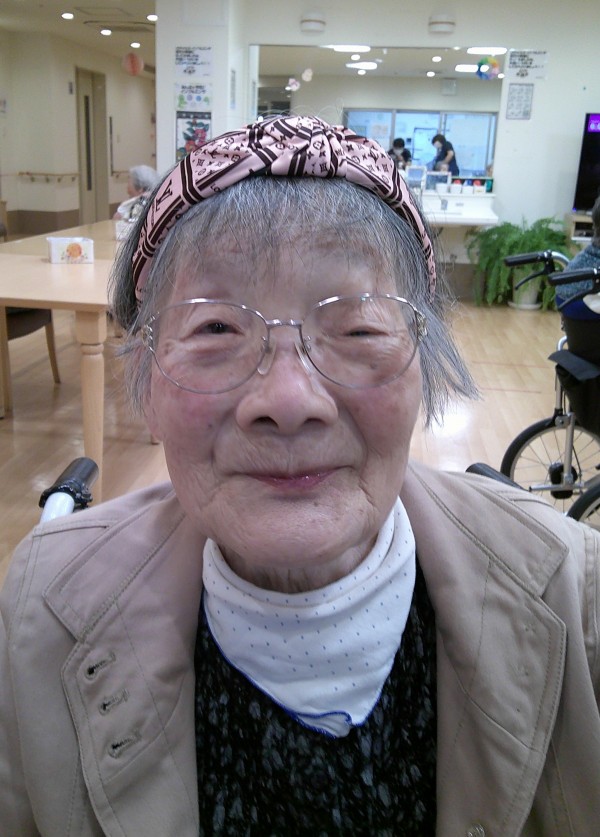 利用者さんと職員が話していると、ふと職員の髪留めを見て「その髪留め可愛いね」と言われ、職員がつけてあげるとニコニコし、