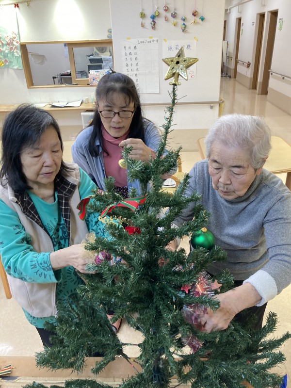 まずはツリーの飾付けを皆さんと「ワイワイ」