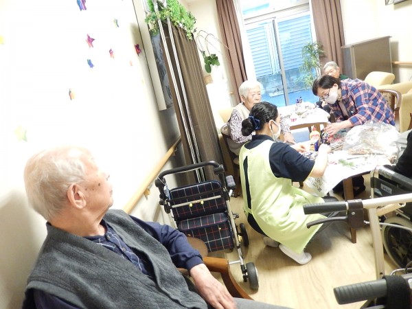 早速、男性のご利用者さまもお仲間に入って、一緒に作ります(^^)/