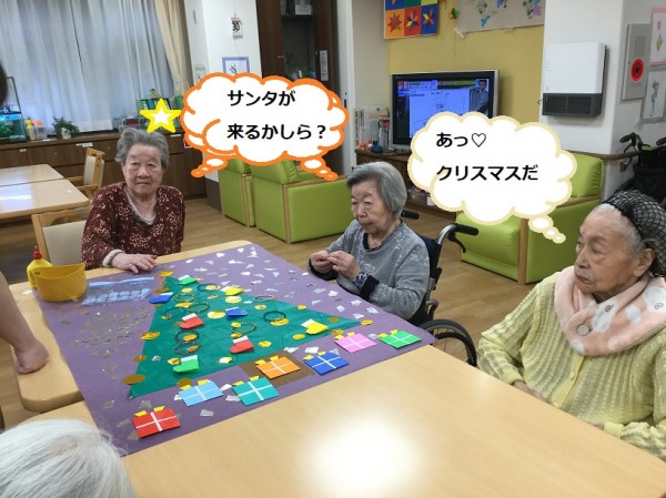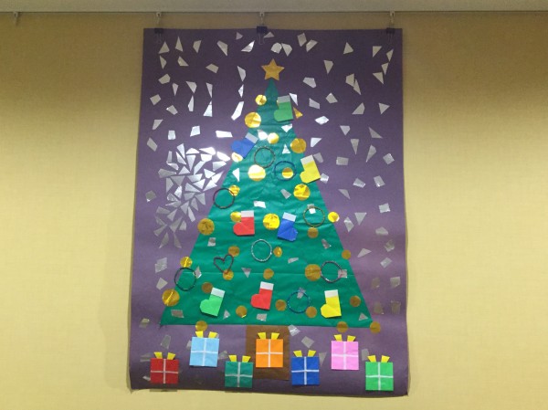 1階は壁飾りでクリスマスツリーを作っていました☆