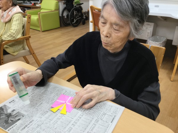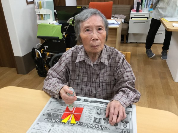 1階の皆さん、のりを使って何やら作成中のご様子。