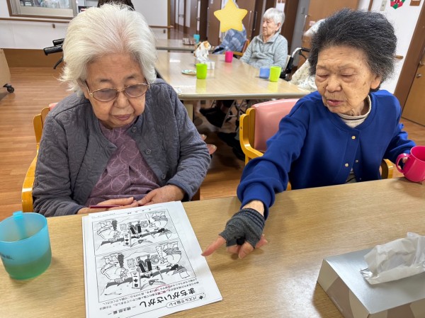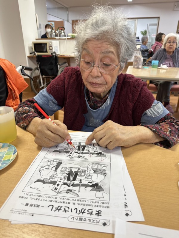 ◉新作の『間違い探し』に、『これ毎月楽しみにしてるのよ』『あと2つ、どれだと思う〜?頭を使うよね〜』と、同席の方々と談笑されながら取り組まれる方。