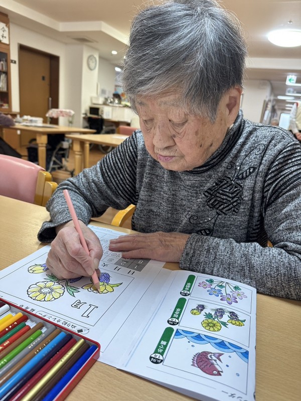 ◉『福寿草って可愛いよね♪』と、季節の塗り絵に取り組まれるお花大好きなK様♡