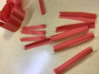 リボンを三角形に貼り合わせ、キラキラ、色とりどりの
