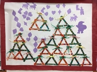 三角飾りを組み合わせて、ツリーの形にしていきますよ♪