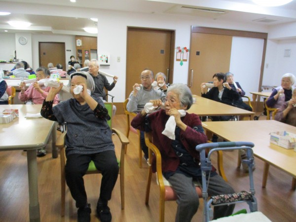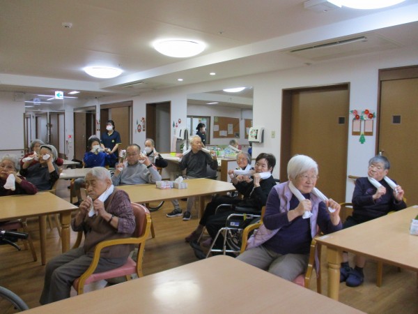 11月28日、2階で内野本郷の入居者様が集まり、リモートでトレーニングを行いました\(^o^)/