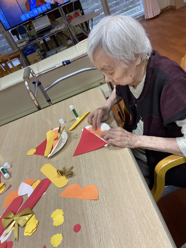 先日、1階、2階のご利用者様とサンタクロースの飾りを制作しました!