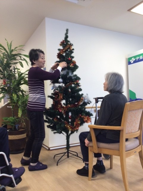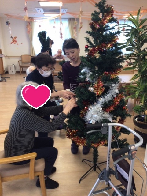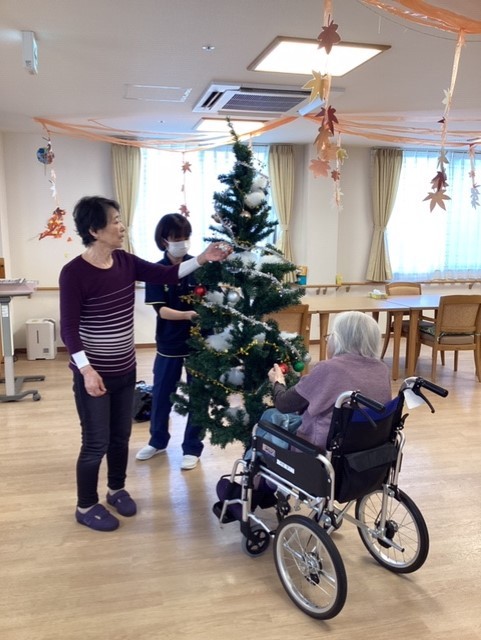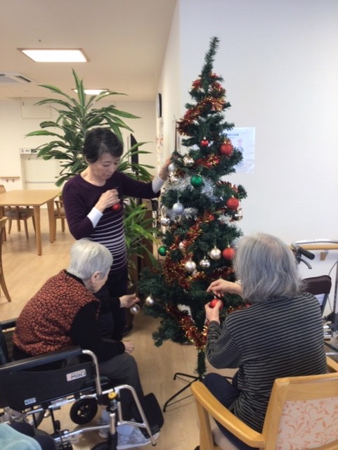 先日、ご利用者様と一緒にクリスマスツリーやリースの飾り付けを行いました。