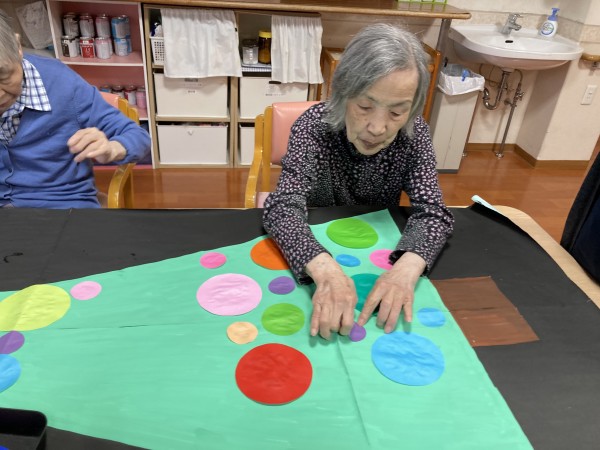 時々談笑しながら、職員も一緒に貼り付けながらどの辺がいいのか考えながら制作していました。