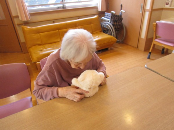 S様はご家族からプレゼントされたクマのぬいぐるみが 最近とてもお気に入りです。