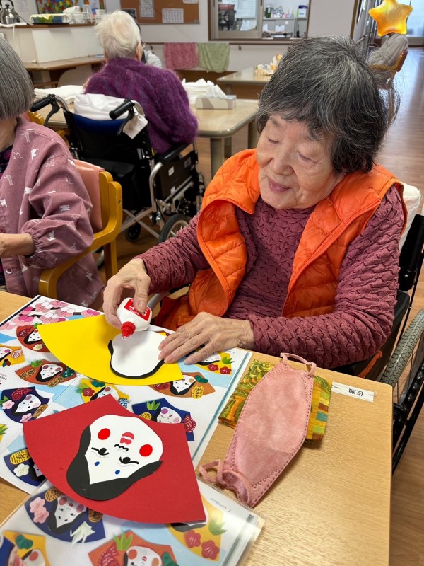 縁起物の制作を通して、気分の高揚を促し、また生活意欲の向上も目的としています。