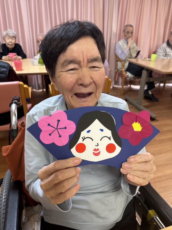 そして折り紙で製作した亀や鶴をバランスを考えながら、扇に貼って頂きました☆
