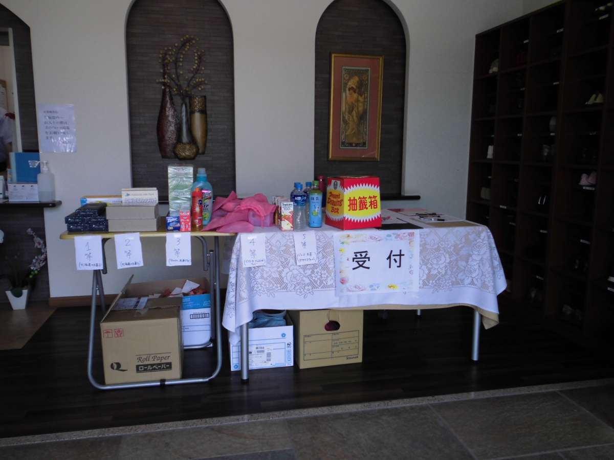 ご家族・お客様にはくじ引きをして頂き、今回は早々に一等賞が出て大変な盛り上がりでした。
