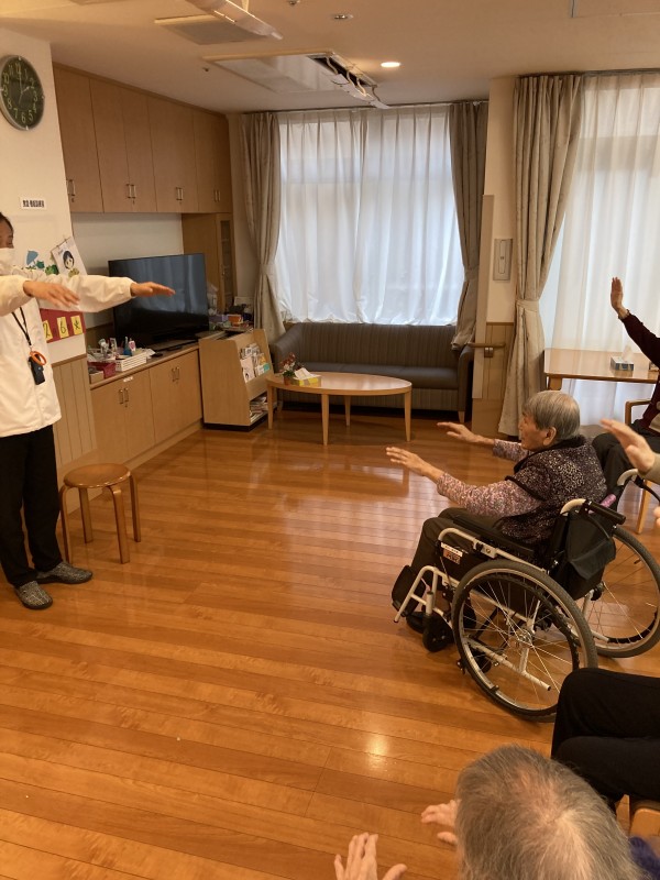 入居者様の動きに合わせて各階毎で体操を変えて頂きありがとうございます。