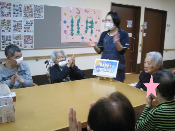 12月14日に認知症対応型グループホームみんなの家・蕨2の2階フロアでは今年最後の誕生日会が行われていました。