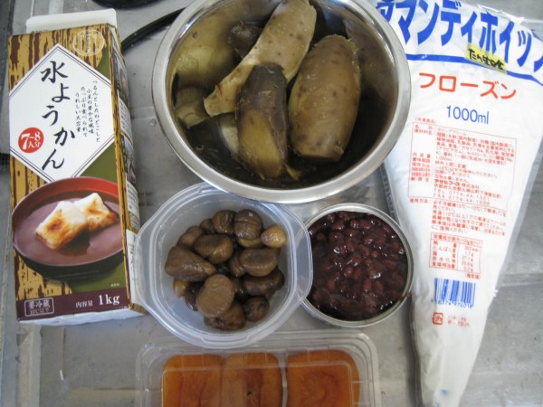 何日も前から「羊かんが食べたいな」「干し柿もいいねぇ」などと話し、お芋ペーストや甘栗などもてんこ盛りのパフェをお出ししました。