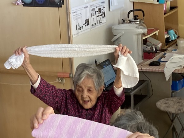 毎月参加しているALSOK介護のリモート体操教室ですが、今回はタオル体操の様子をお知らせします☆