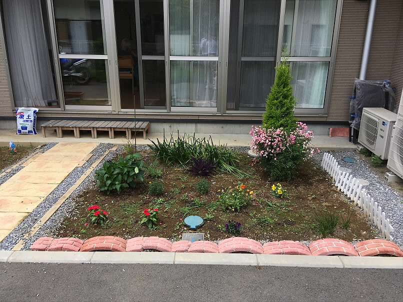 こちらは野菜畑の隣りの花壇です。野菜畑と同じく草むしりを始め、お花の苗を植える
